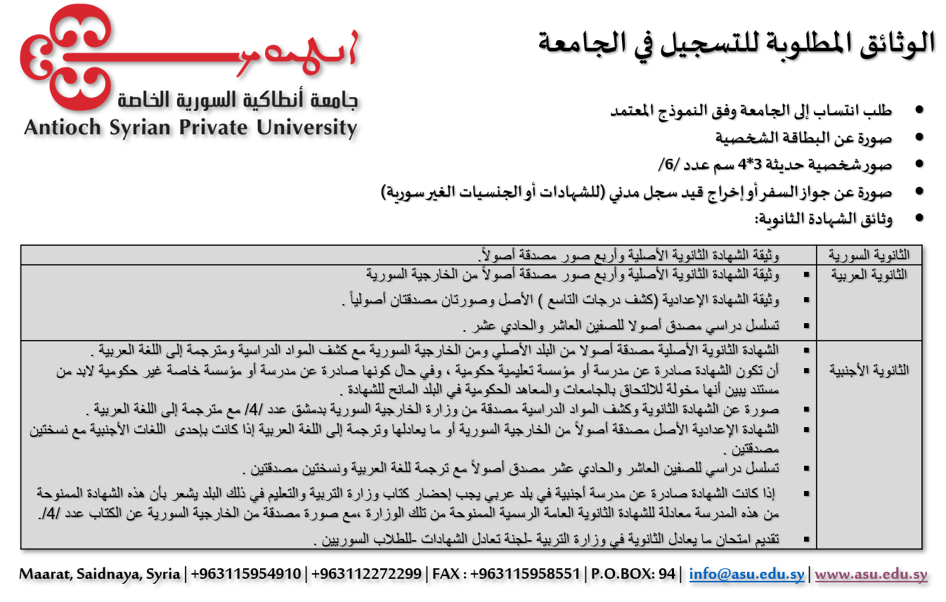 الوثائق المطلوبة للتسجيل في الجامعة 2025-2026 18 November 2025 Submitted by philip on 18 November 2025