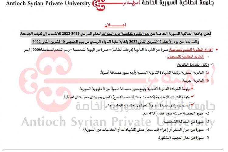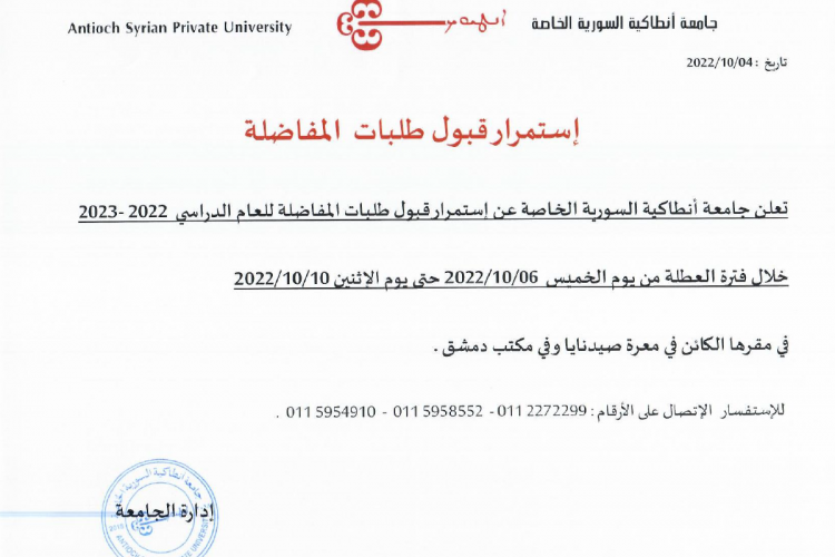 الأخبار الأخبار مفاضلة ملء الشواغر للعام الدراسي 2022-2023 02 نوفمبر 22 إعلان قبول المفاضلة الأولى للعام الدراسي 2022-2023 26 أكتوبر 22 استمرار استقبال طلبات المفاضلة خلال أيام 21-22-23/ تشرين الأول / 2022 21 أكتوبر 22 تعيين الدكتور رياض العيسى عميدا لكلية الهندسة 21 أكتوبر 22 تنظيم يوم مفتوح للطلاب المقبلين على الحياة الجامعية 11 أكتوبر 22 امتحان القبول للهندسة المعمارية للمرة الثانية (العام الدراسي 2022-2023) 05 أكتوبر 22 استمرار قبول طلبات المفاضلة خلال أيام العطلة 04 أكتوبر 22 مفاضلة القبول للعام الدراسي 2022-2023 30 سبتمبر 22 نتائج مشاريع التخرج كلية العلوم الإدارية والإقتصادية 29 سبتمبر 22 Pagination الصفحة الأولى « الأول Previous page ‹ … الصفحة 6 الصفحة 7 الصفحة 8 الصفحة 9 Current page 10 الصفحة 11 الصفحة 12 الصفحة 13 الصفحة 14 … الصفحة التالية › آخر صفحة الأخير » news menu الأخبار معرض الصور